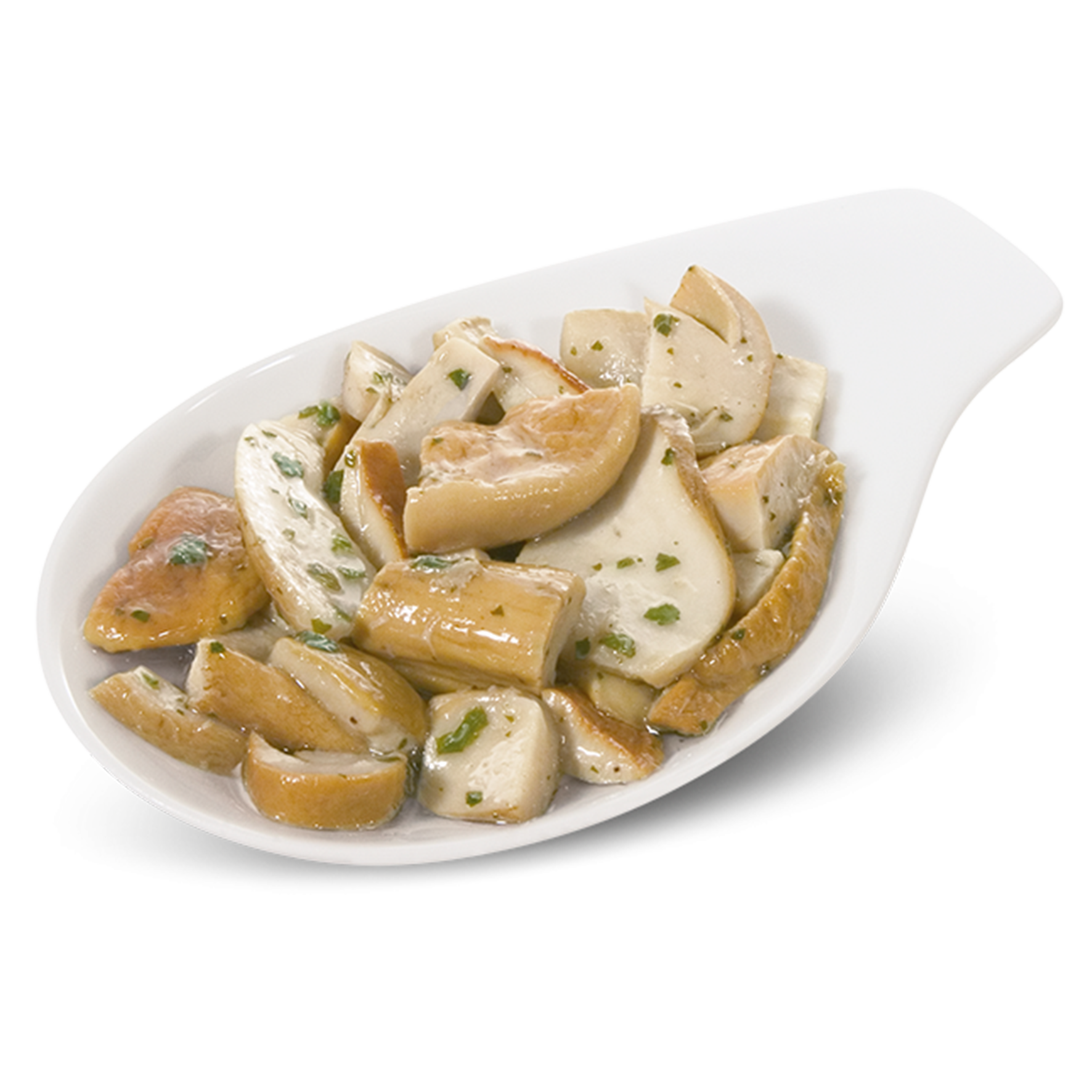 Steinpilzscheiben und -stücke, mit Öl und Kräutern zubereitet. Hervorragend als Belag für Pizzas und Bruschettas und zum Füllen von Brötchen und Sandwiches.