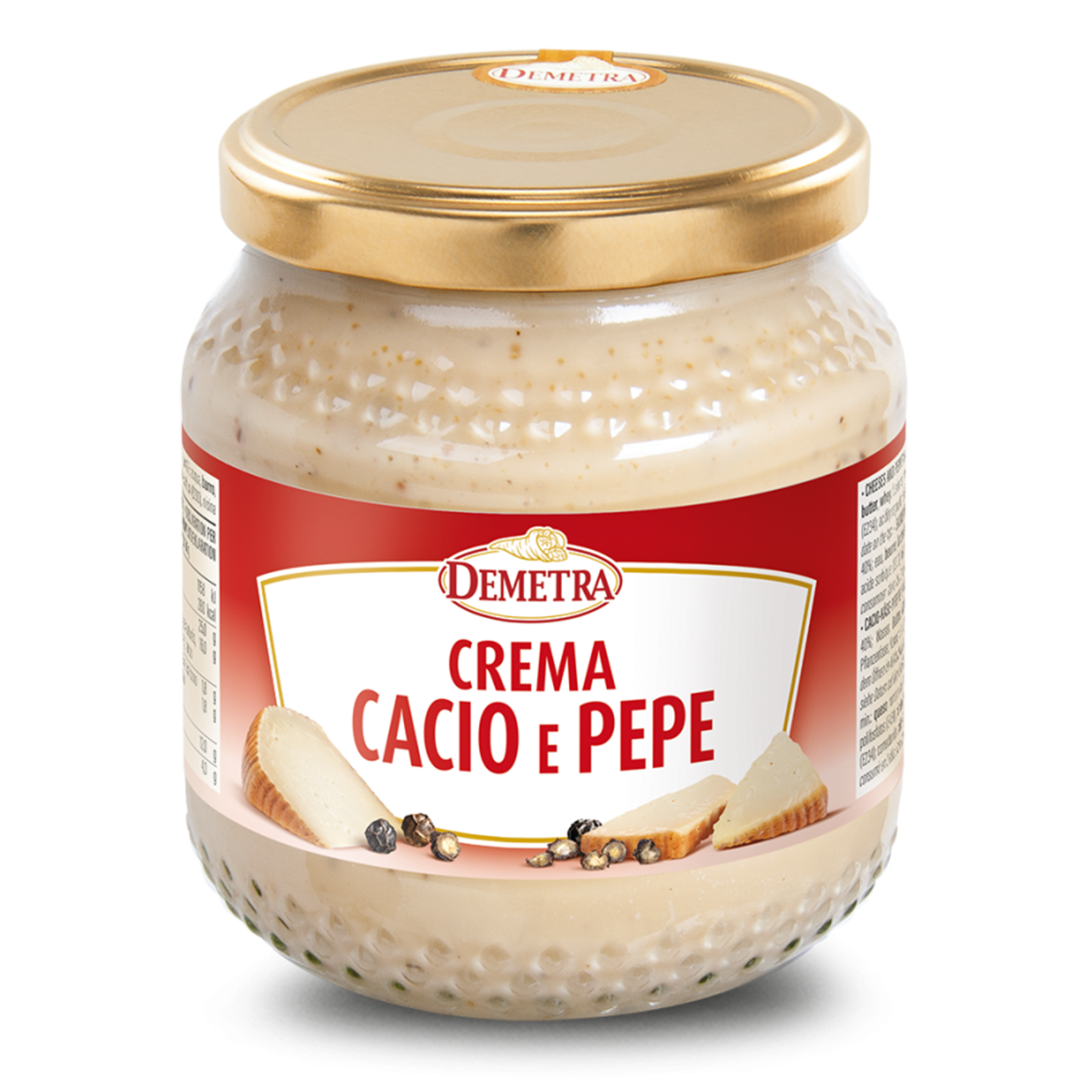 Käsecreme mit Pecorino Romano D.O.P., Butter und Pfeffer. Ideal für die Zubereitung der klassischen Pasta “Cacio e Pepe”, hervorragend zur Verwendung auf Pizzen und Crostini sowie als Soße für Hamburgers.
