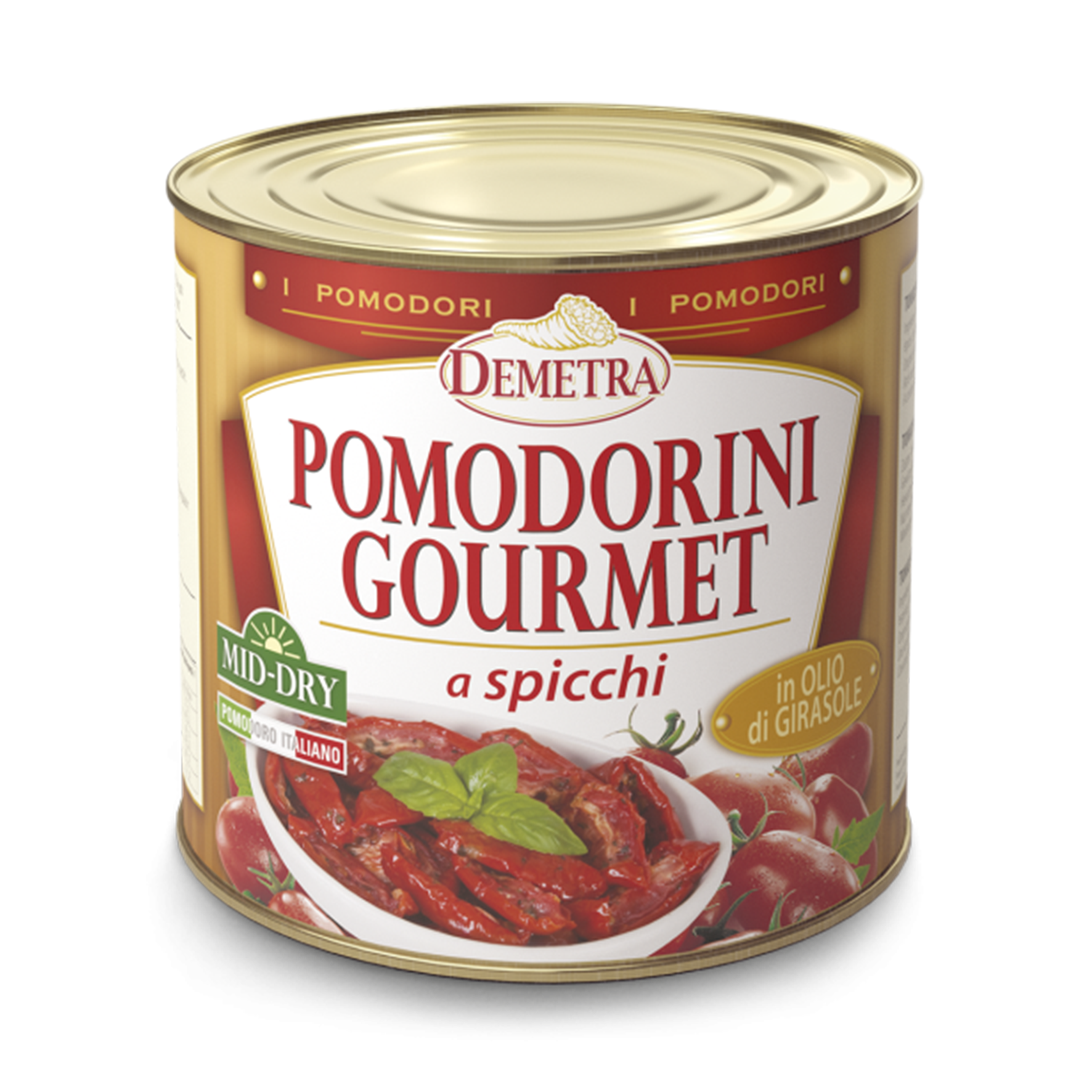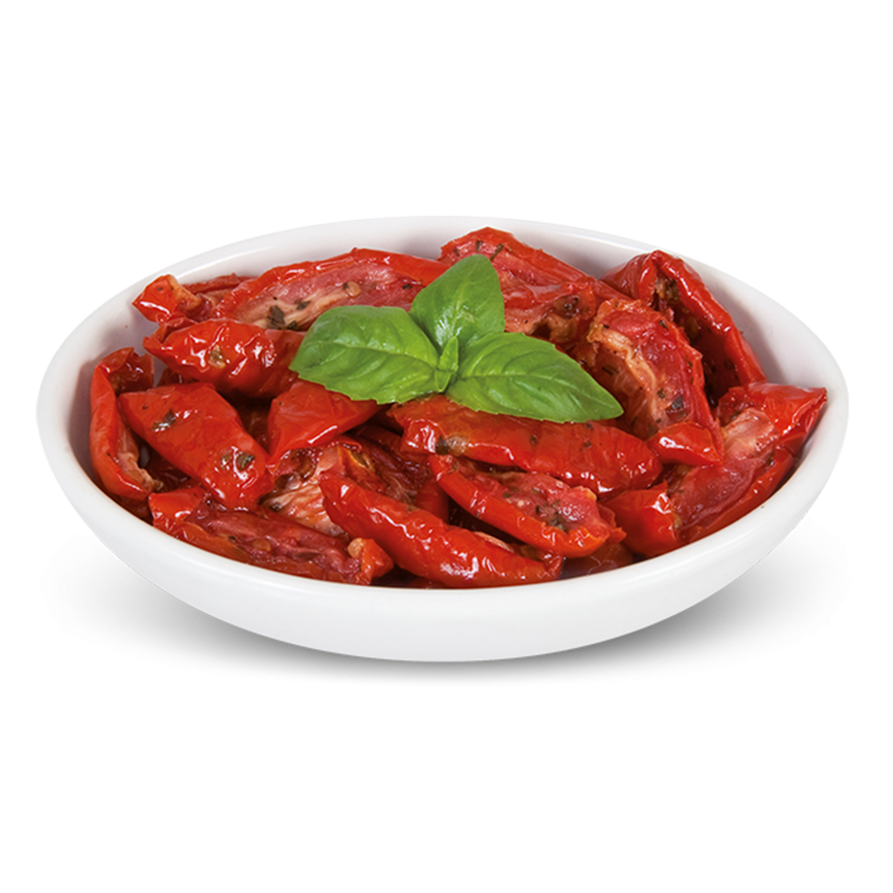 Italienische Tomaten, in der Sonne angetrocknet, in Viertel geschnitten und in gewürztem Sonnenblumenöl eingelegt. Ihr zarter Geschmack macht sie ideal als Appetitanreger oder Beilage, zum Belegen von Pizzas, Bruschettas und Sandwiches sowie zu Pasta.